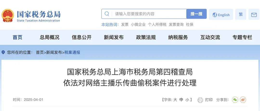 经查,网络主播乐传曲(网名:曲曲大女人)通过个人账户收款隐匿销售收入,以及将个人取得的劳务报酬所得转换为个体工商户经营所得等手段偷逃税款。国家税务总局上海市税务局第四稽查局依据《中华人民共和国个人所得税法》《中华人民共和国税收征收管理法》《中华人民共和国行政处罚法》等相关法律法规规定,对其依法追缴税费款、加收滞纳金并处罚款,共计758万元。目前,乐传曲已按规定缴清税费款、滞纳金及罚款。